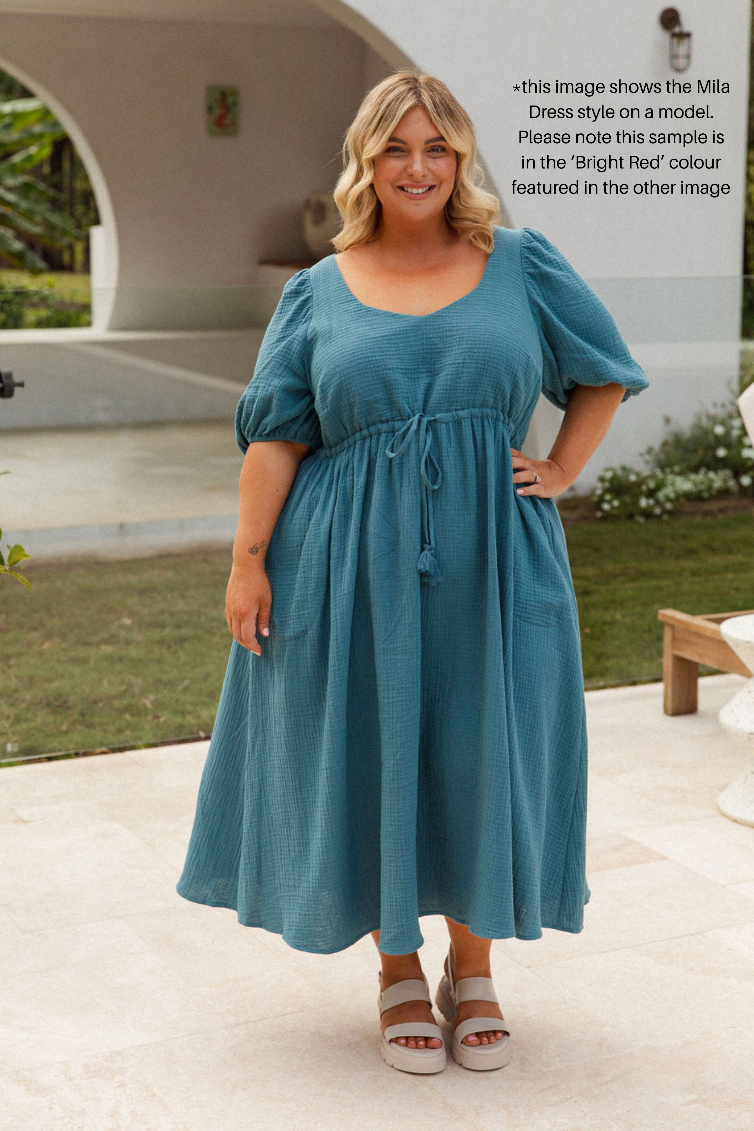 Model showcasing women's plus size dress online - Ashleigh Dress in Berry by Peach The Label