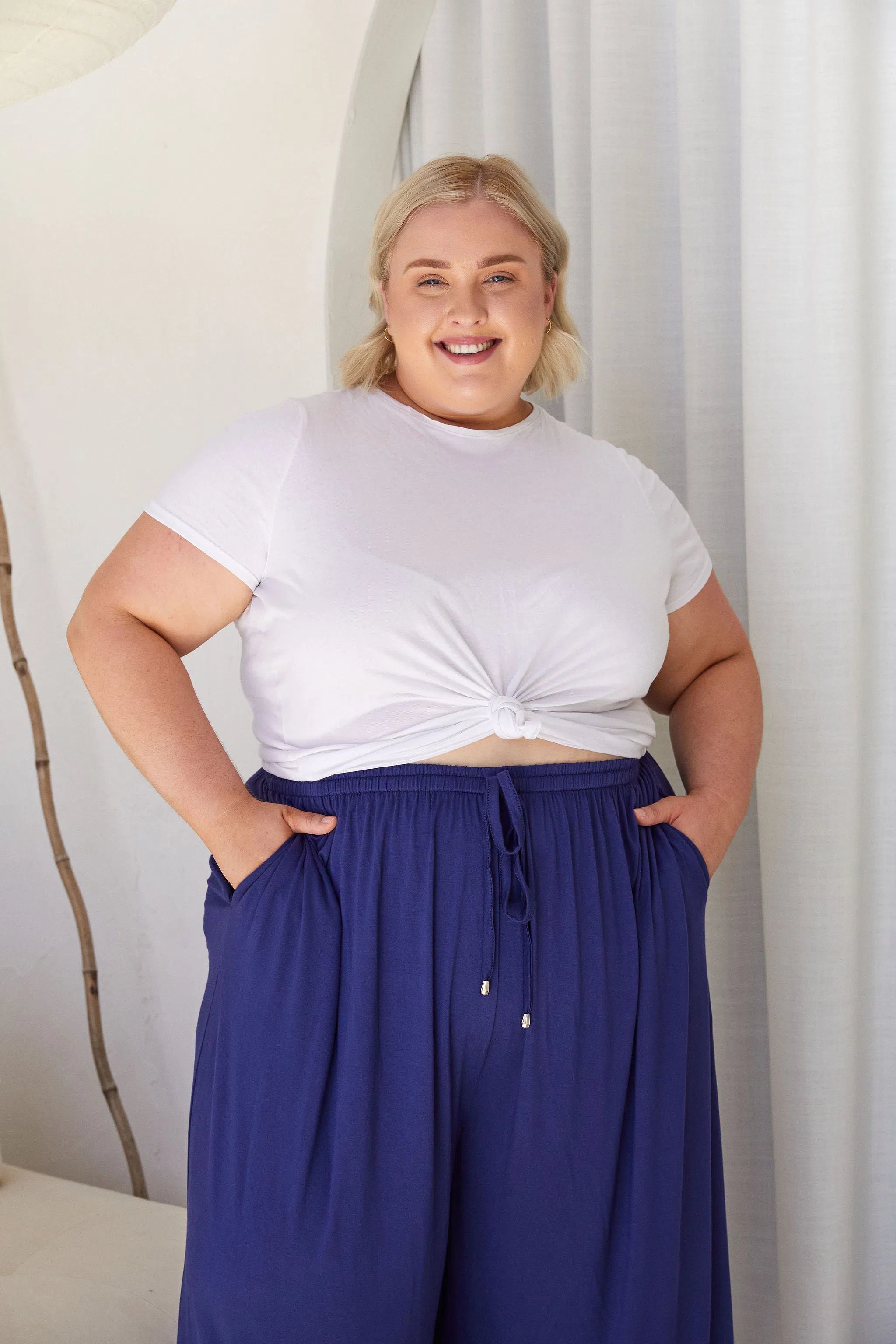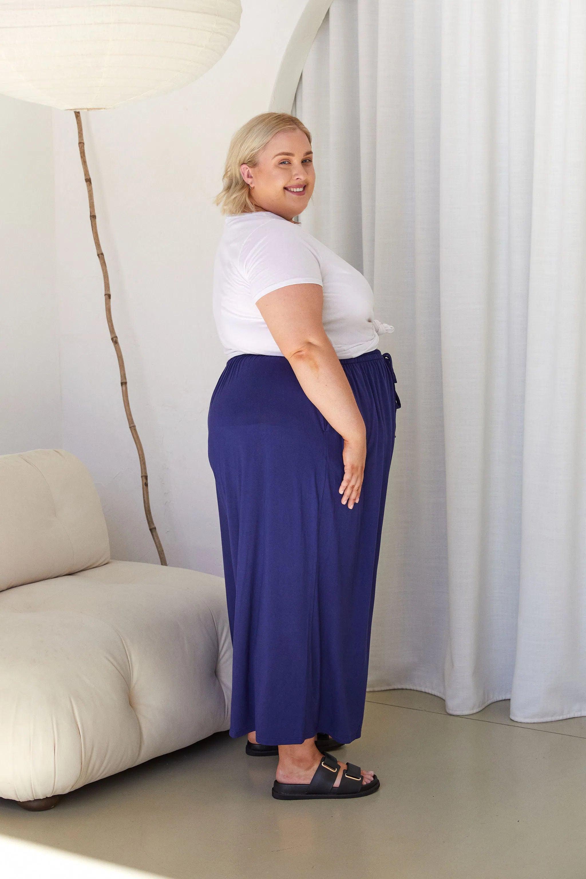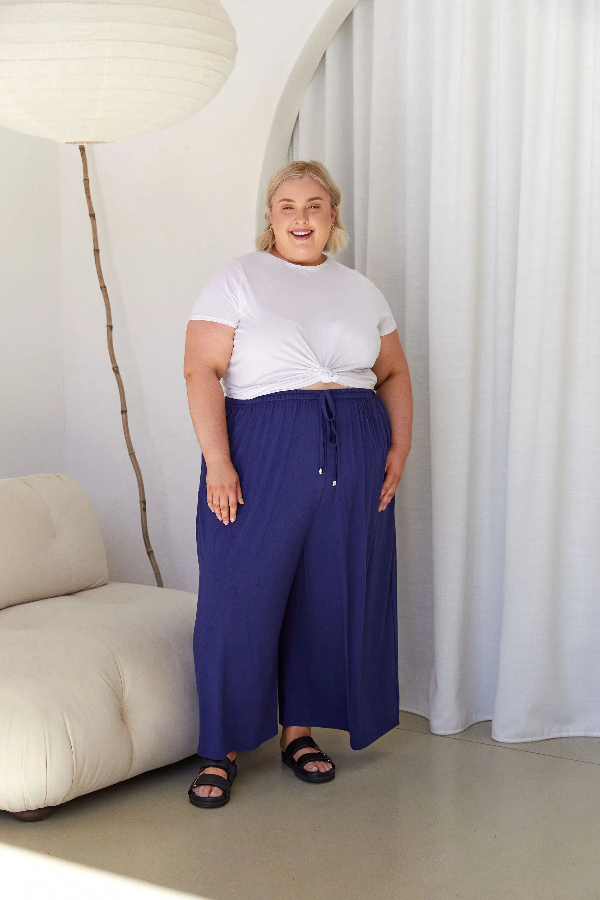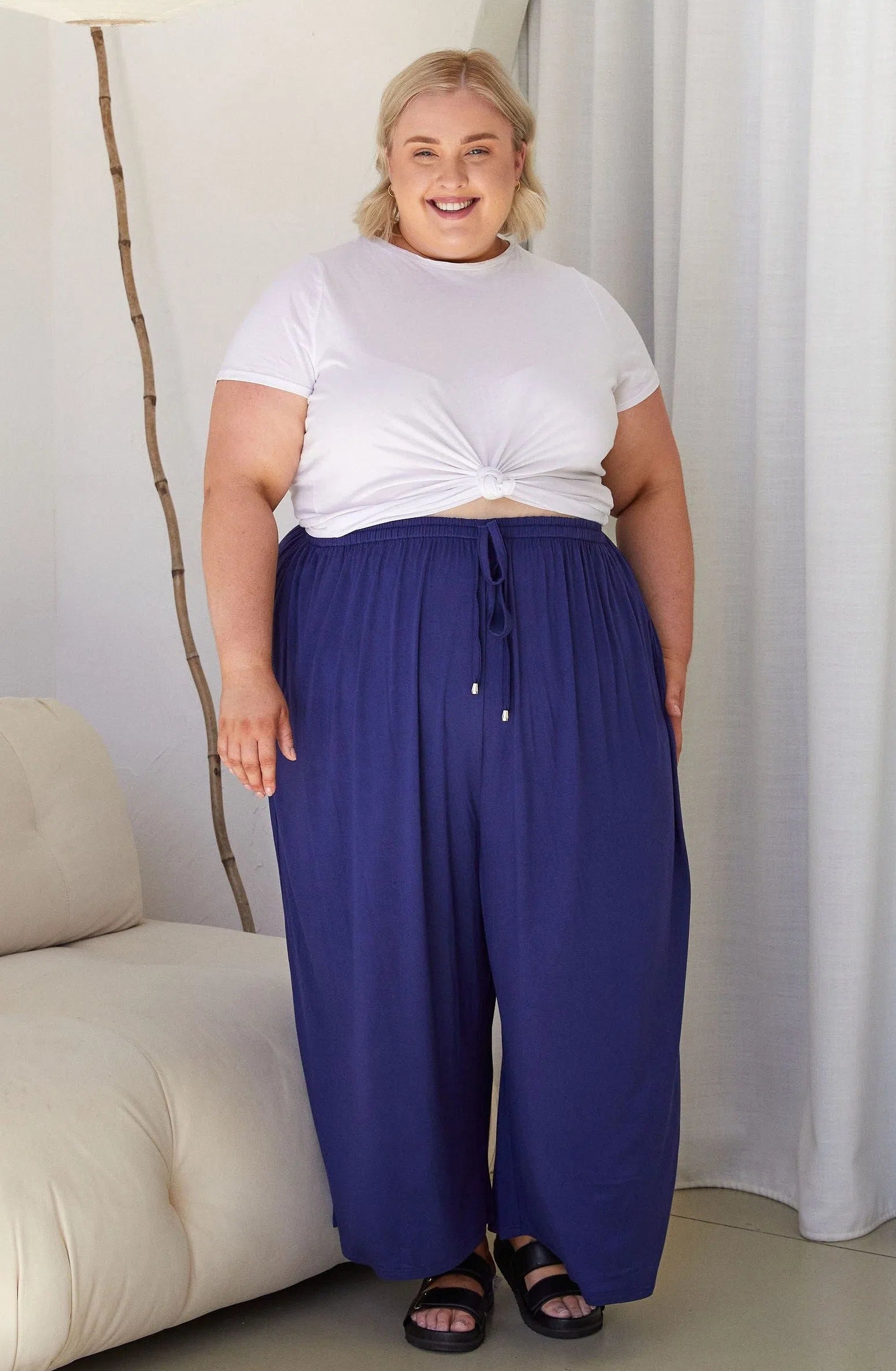 Sarah wears a size 22/24 in the Darcy Pants.