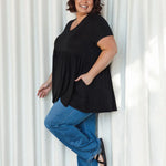 This sweet and relaxed tee is sure to be a favourite throw on and go piece. This cleverly designed tee has handy hidden pockets, a silhouette that defines the waist whilst floating over the midsection and a relaxed and comfortable fit. She may look a familiar...thats she is the cousin of our best selling Lucy Tee! By popular demand we've created a version with a soft v-neckline and ever so slightly lowered the waist seam placement. If you loved Lucy you will absolutely adore Lotti!