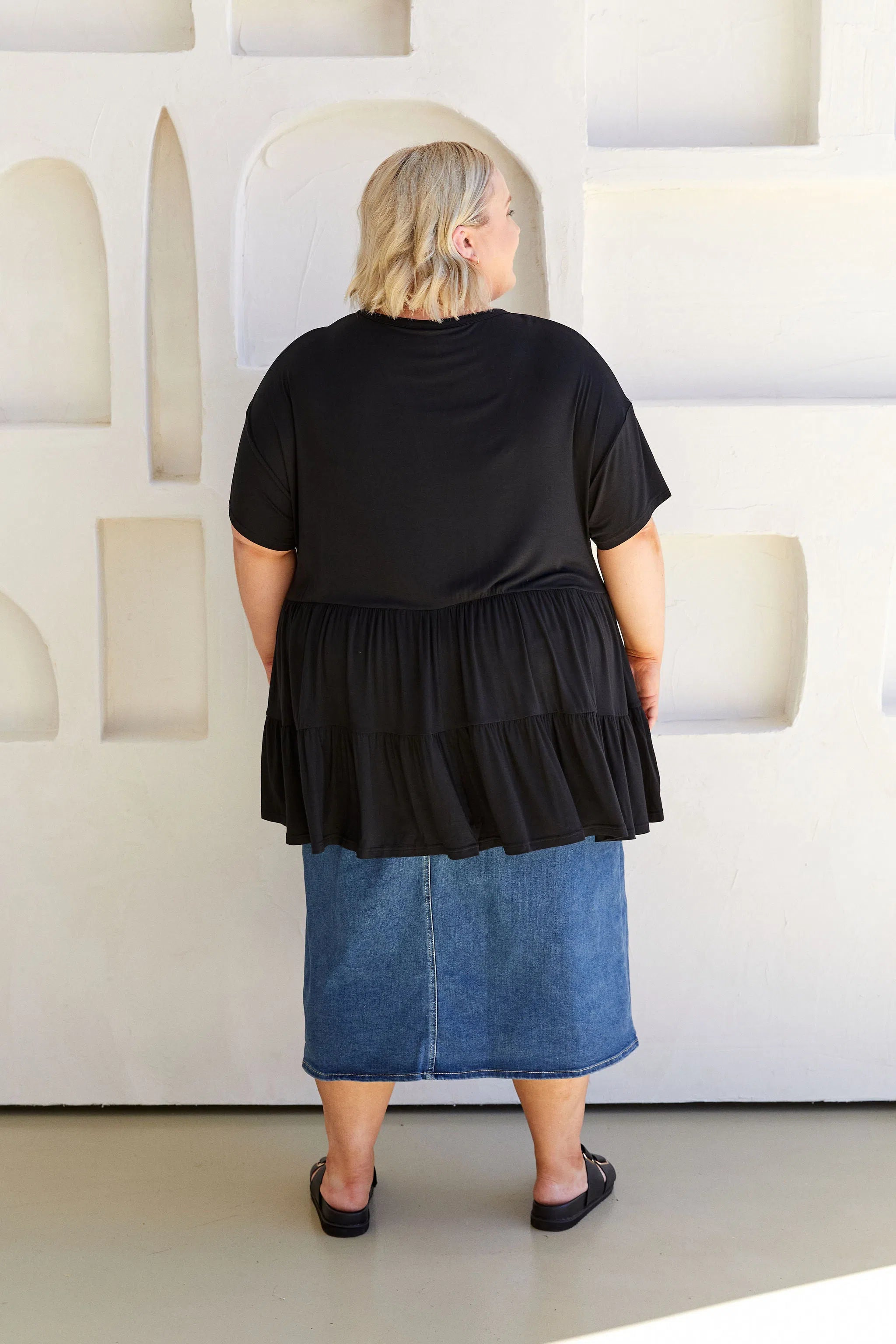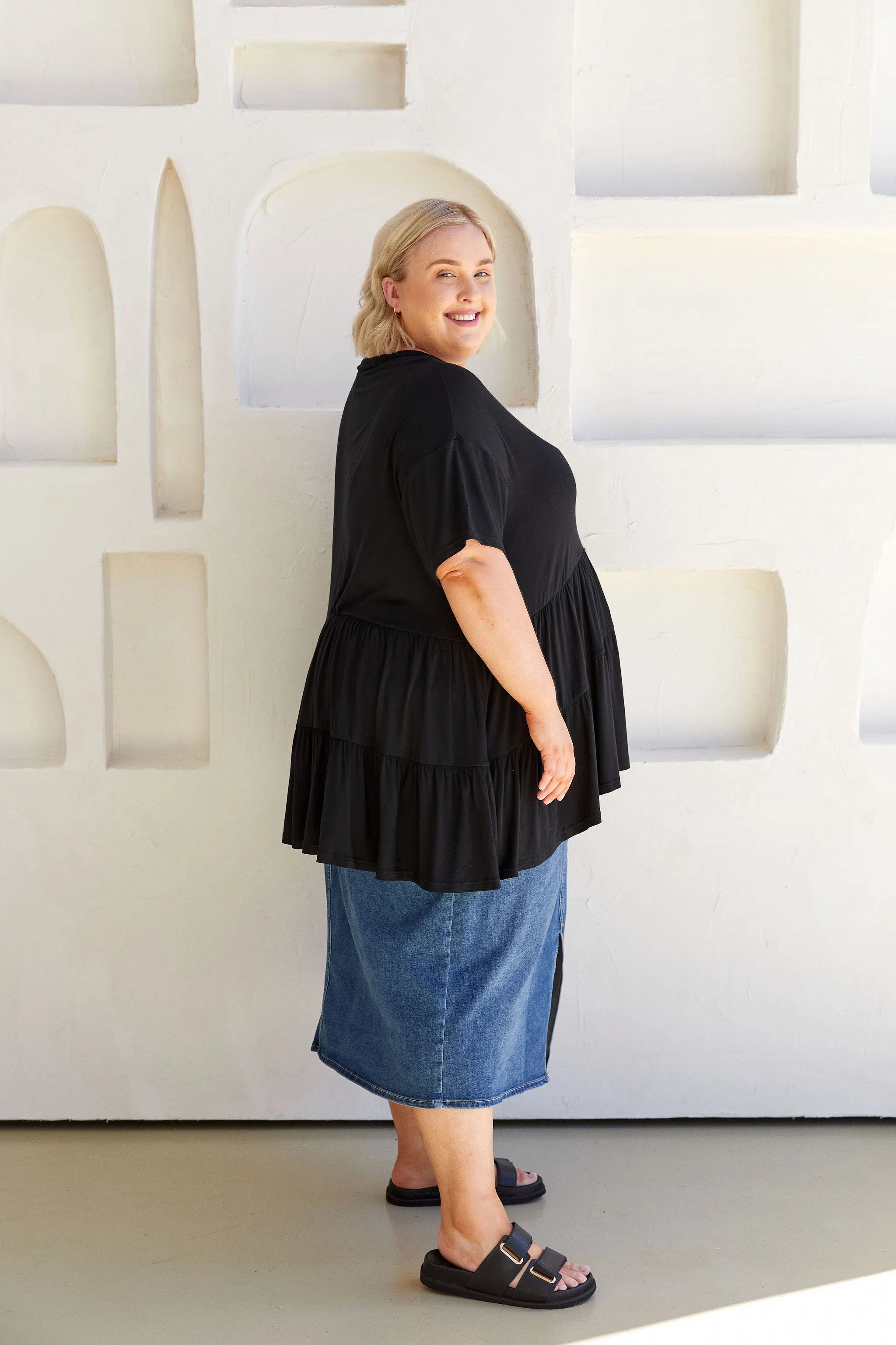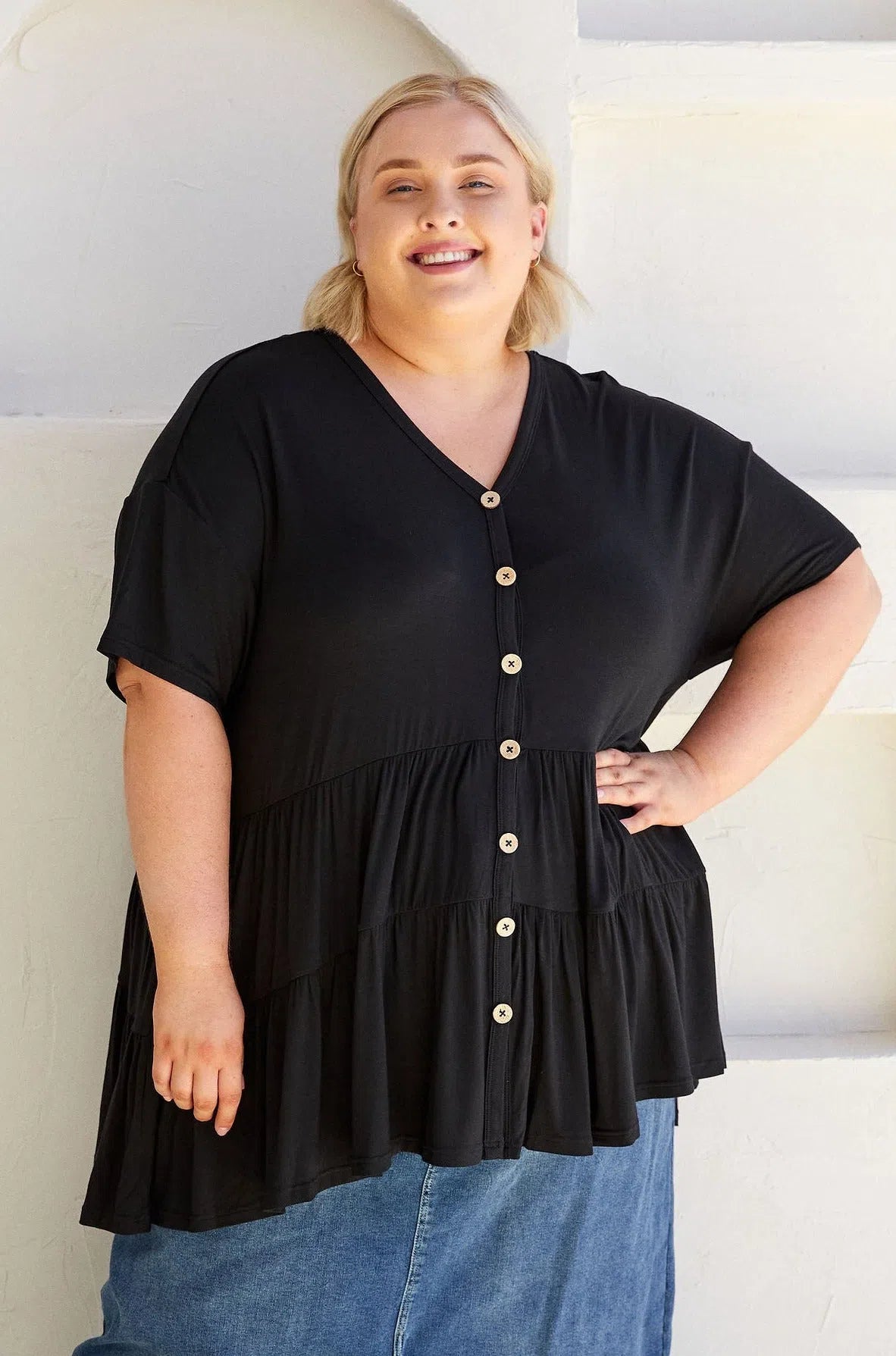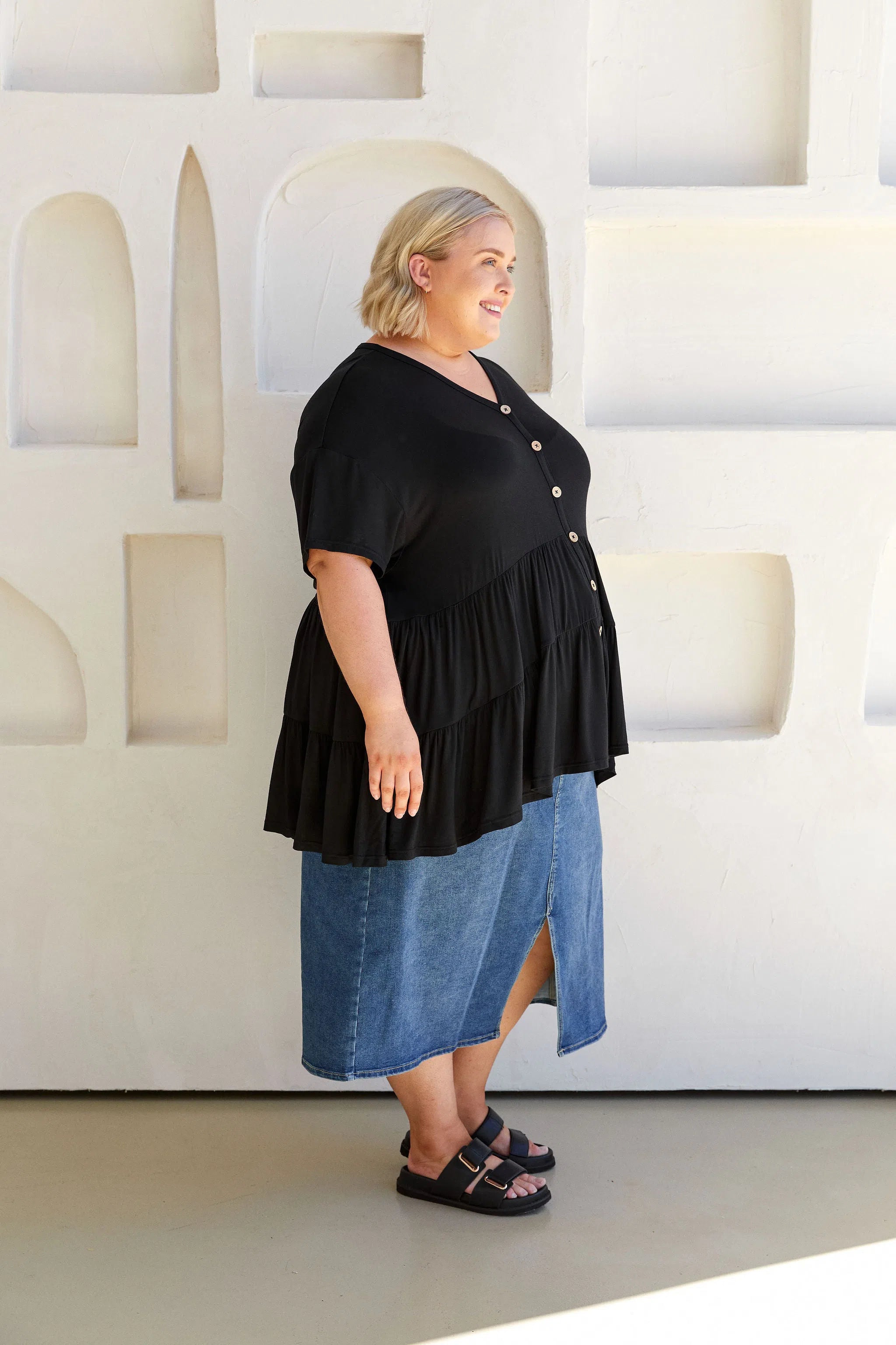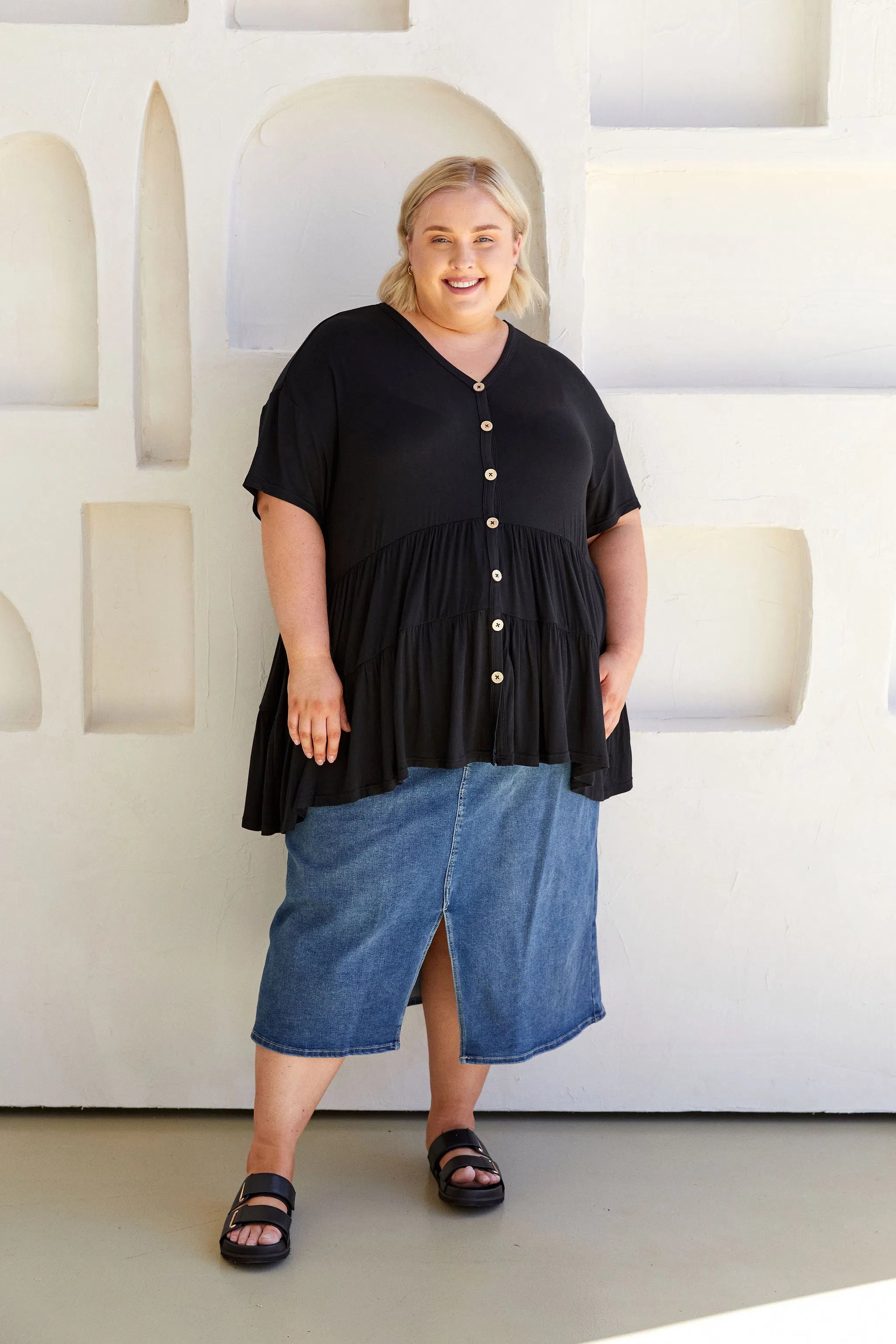 Designed with functional buttons and plenty of room and swish, the Murphy Top is the perfect piece for all life stages. Bump-friendly, feeding-friendly and perfect for beyond. We love the gorgeous drape the tiering gives across the tummy and hip so there's no cling and all comfort. She's the type of top that works across body types with an easy fit and a gorgeous silhouette made for curves.