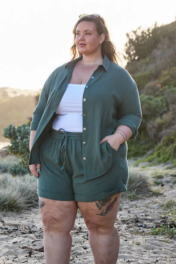 This is the relaxed, classic set your wardrobe has been waiting for. The Reese Shirt brings timeless polish with a relaxed, curve-friendly drape, while the Romy Shorts keep things cool and effortless. Both made in a gorgeous lightweight textured cotton to keep you cool. Together, they strike the perfect balance of casual and put-together — whether you’re heading out for coffee, strolling the beach, or packing for your next holiday. Two staples, endless styling options.