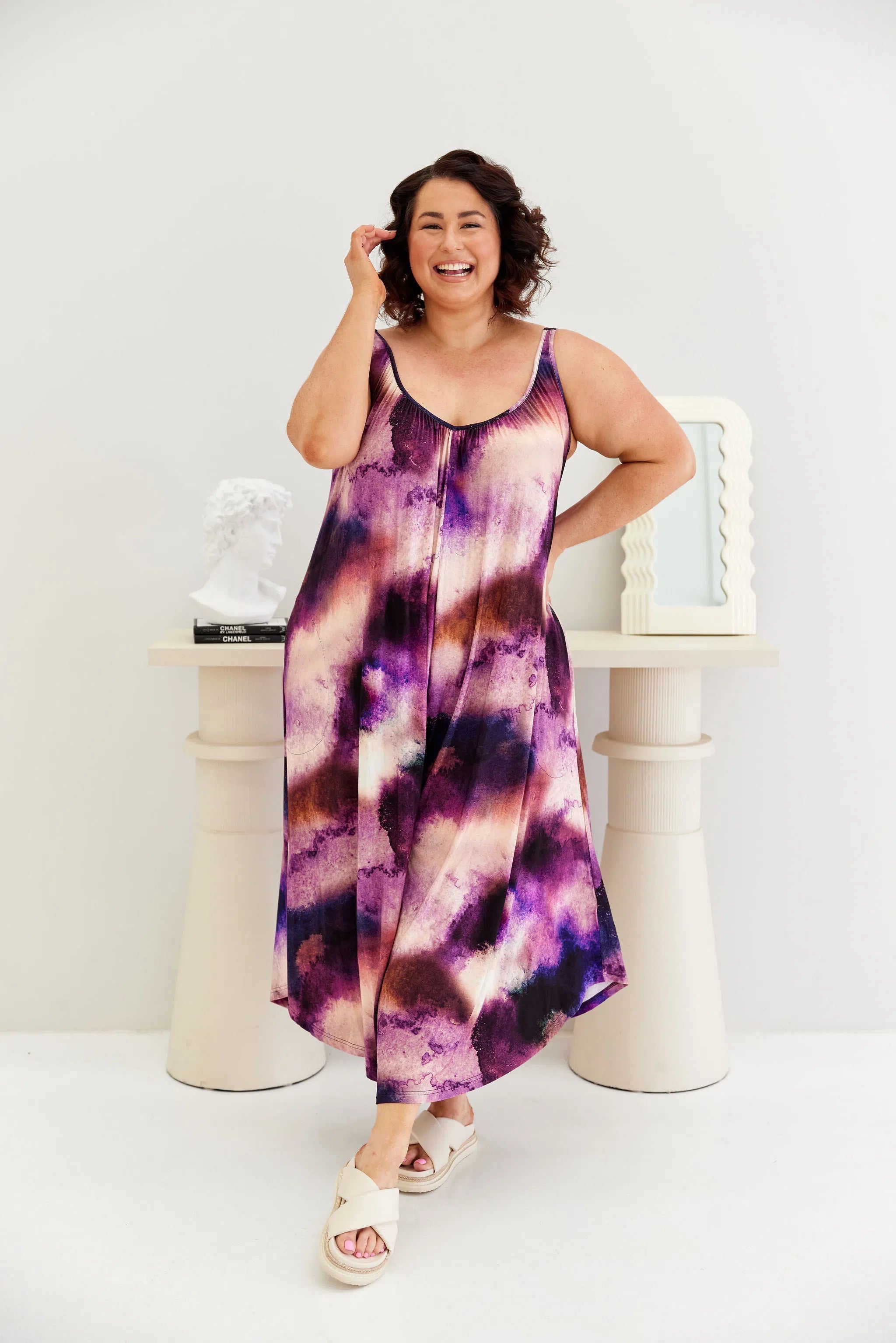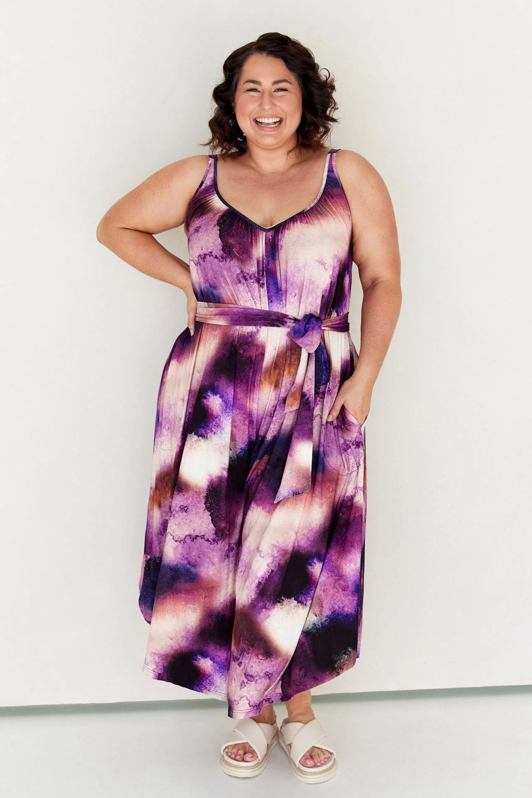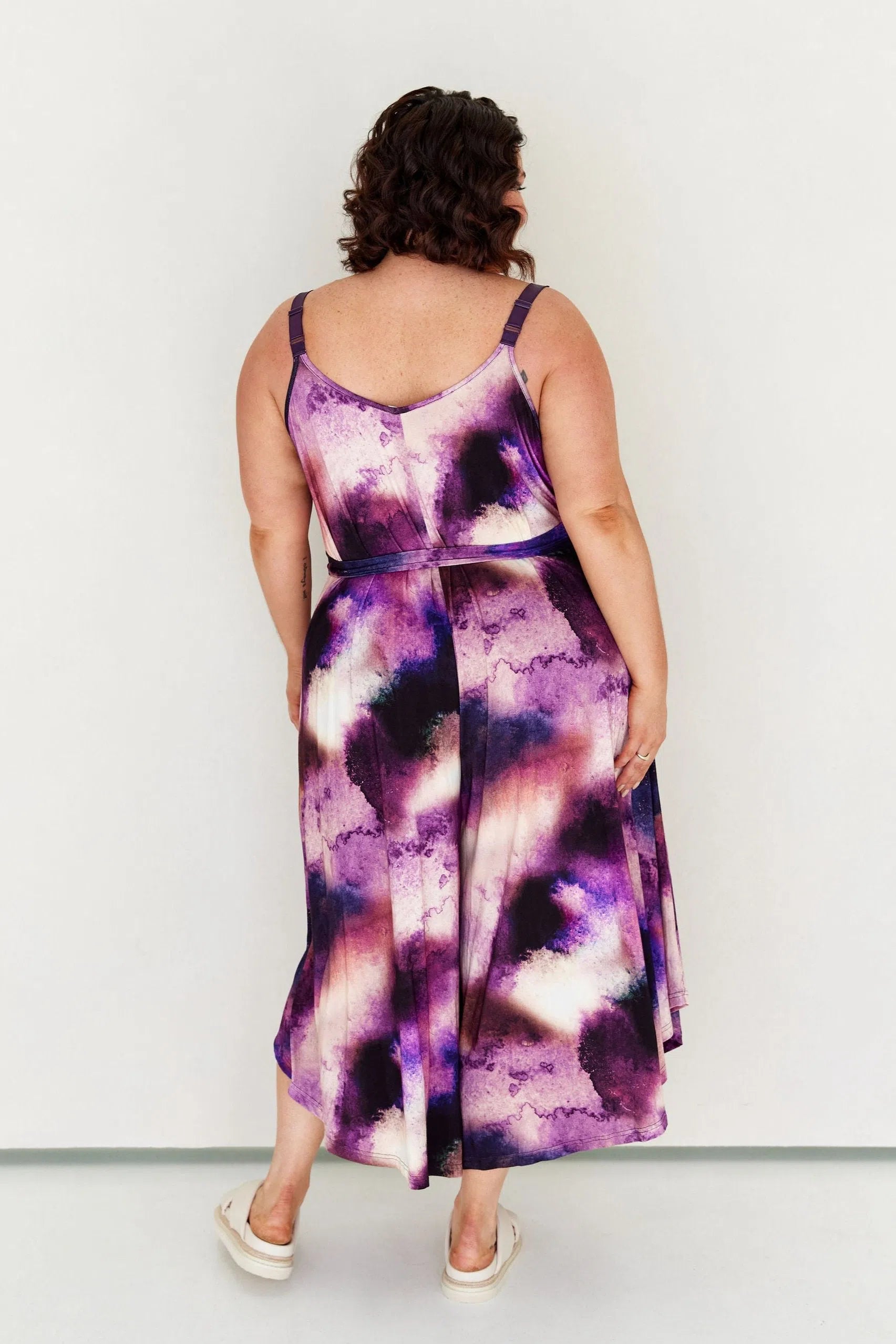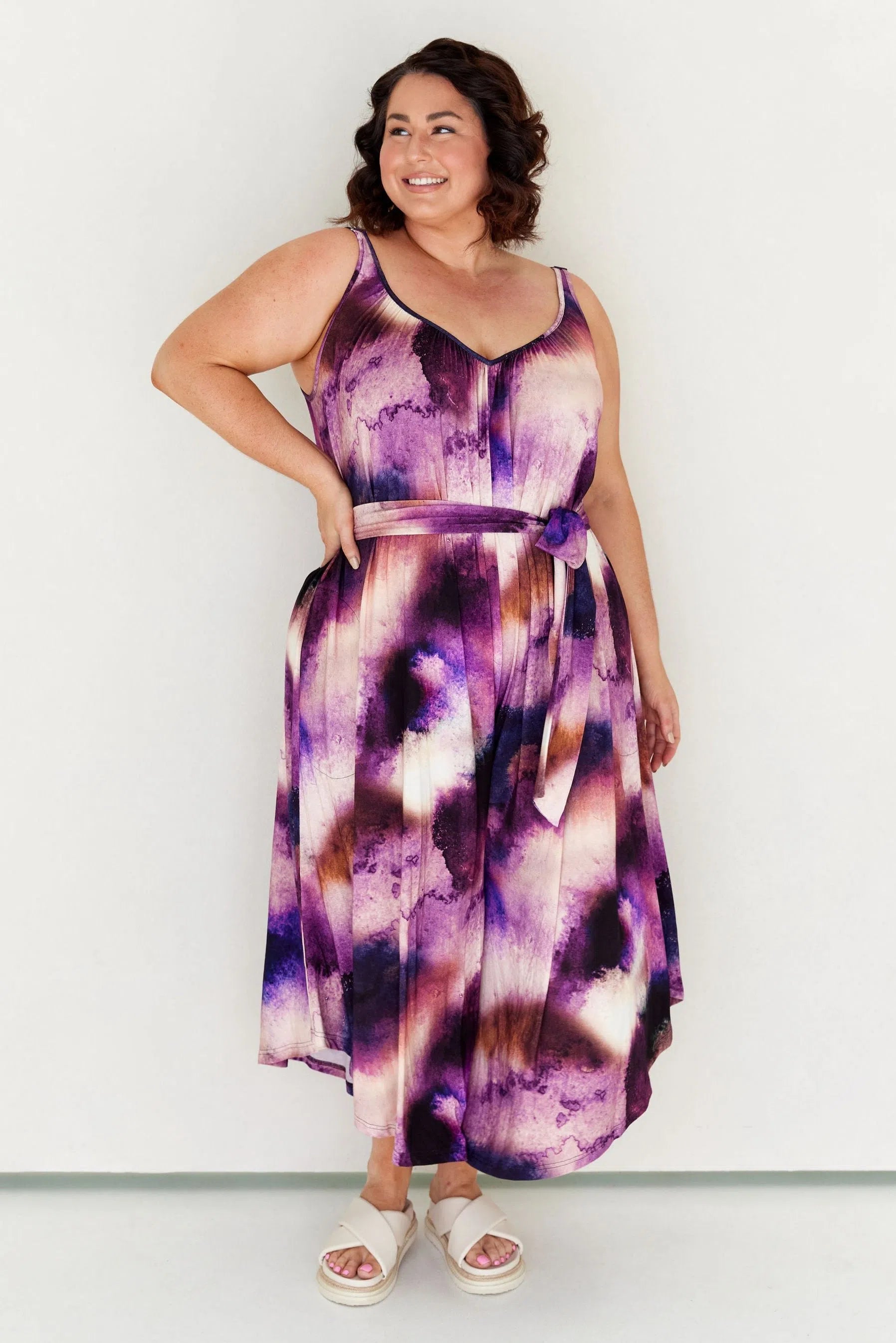 • Generous but a super easy fit! (our advice: wear how you like! The style is super relaxed and generous with adjustable straps to alter overall length and neckline position. Removable waist tie means you can cinch in to custom fit your body. Be guided by your bust size in size selection.)