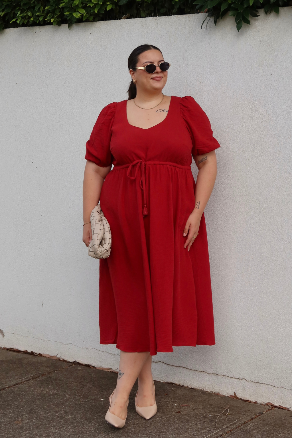 Simone wears a size 20/22 in the Mila Dress.