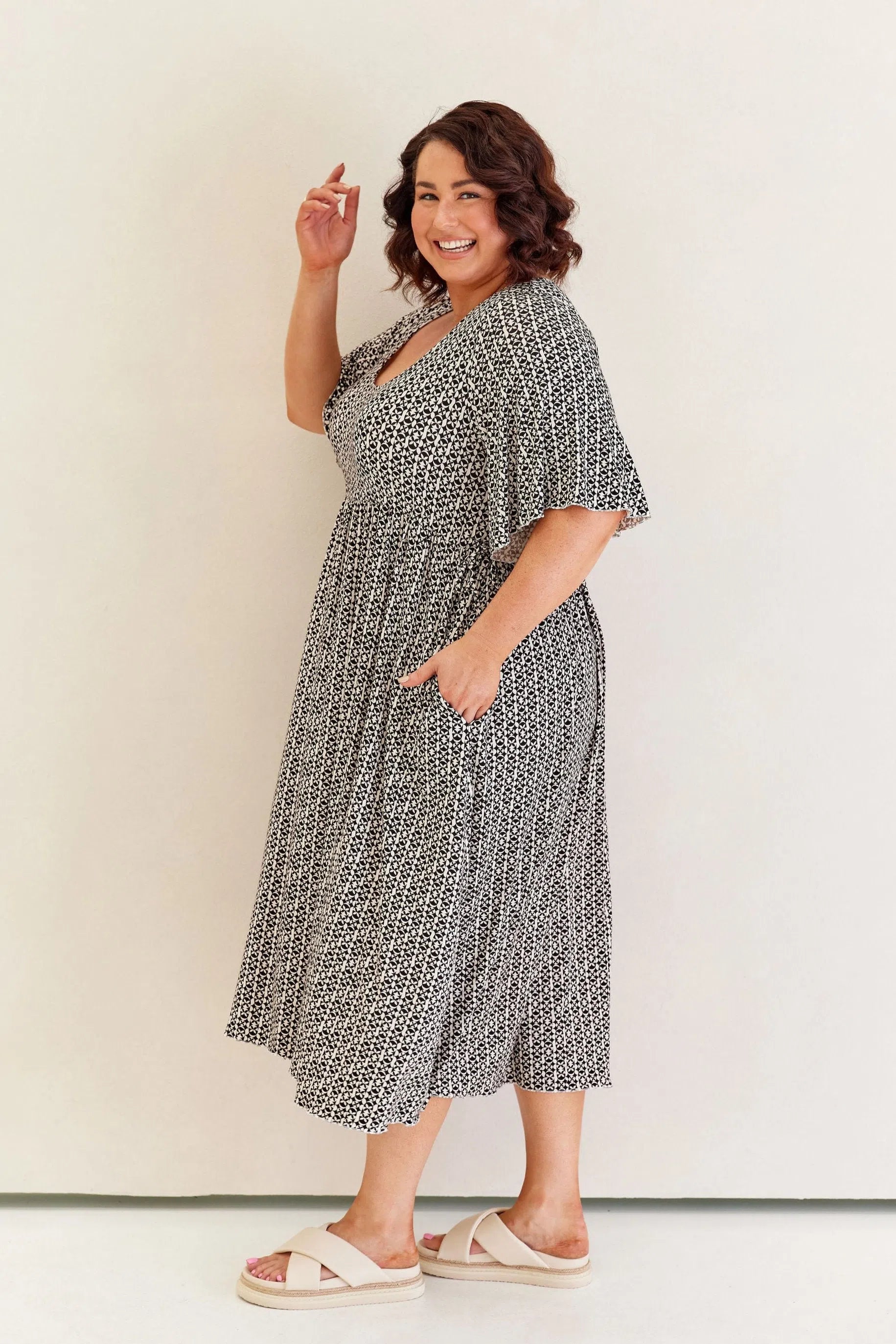 Kate wears a size 18/20 in the Elio Dress.