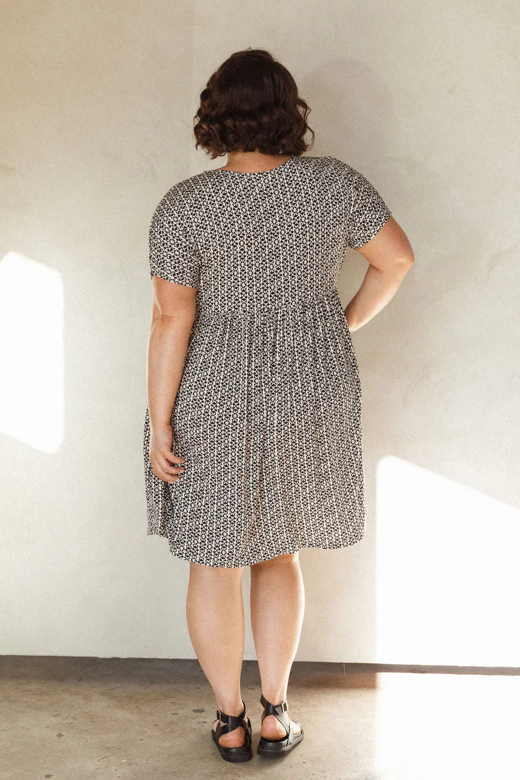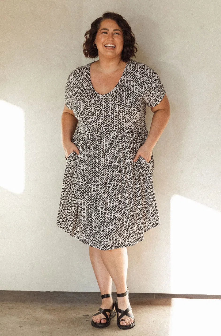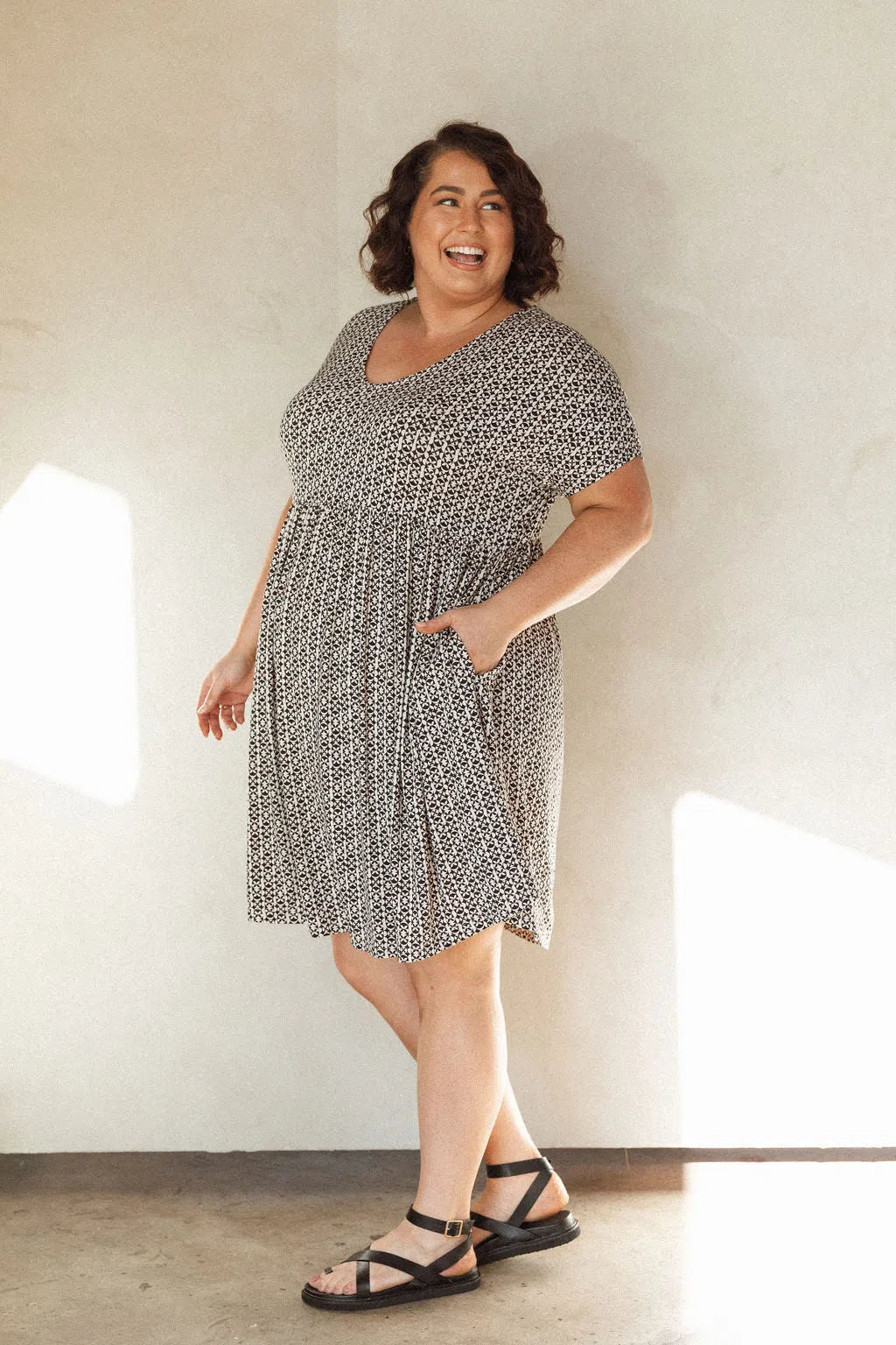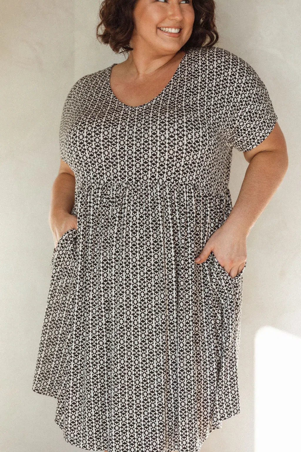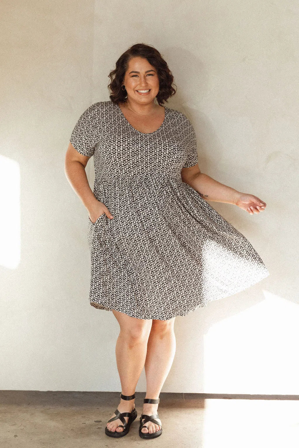 I have a wardrobe full of Peach the Label clothing but when I received my Geo Lauren dress and got a beautiful compliment from hubby I was thrilled. It gave me the confidence for the first time in years to ditch my jeans and cover up tees and actually wear a dress out in public. As someone who has always been super self conscious of her body this was a huge step for me. I decided I needed to buy another Lauren Geo to keep for wearing when I go out, because I wear this dress (and the one I have in Haze) around the house daily, on repeat. With 3 dogs and being a “spiller” keeping something white is just a dream I have. I would love to see a few more colourways like Haze that can disguise daily life hazards!