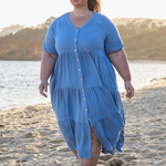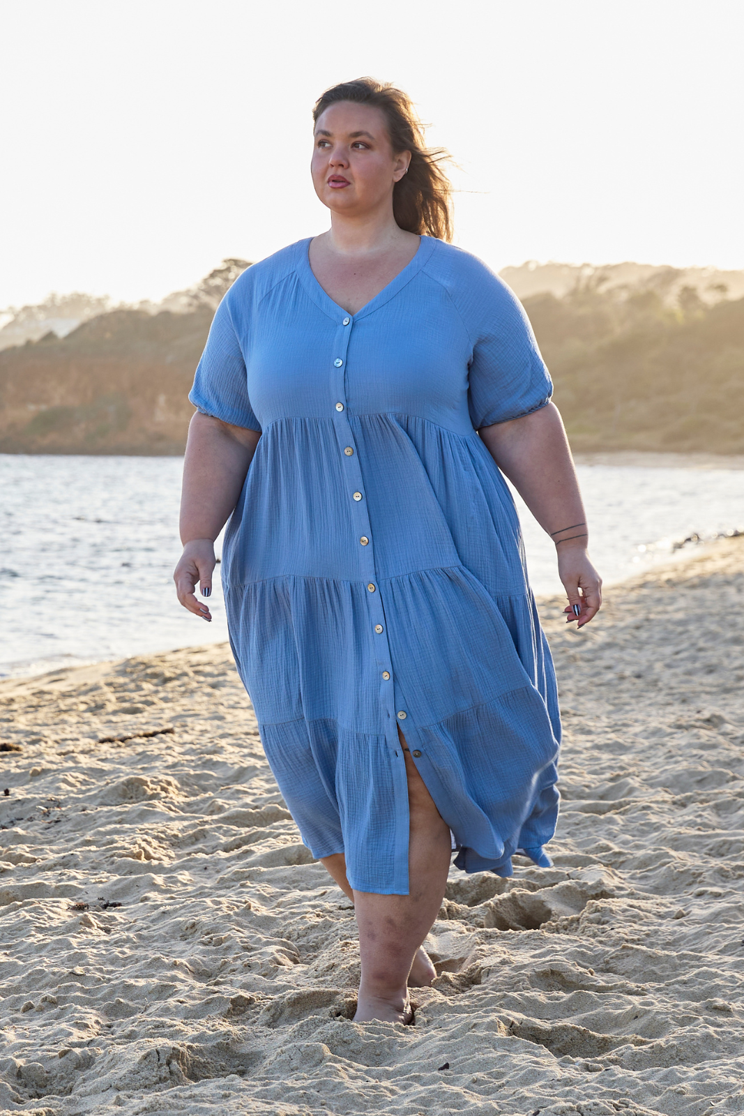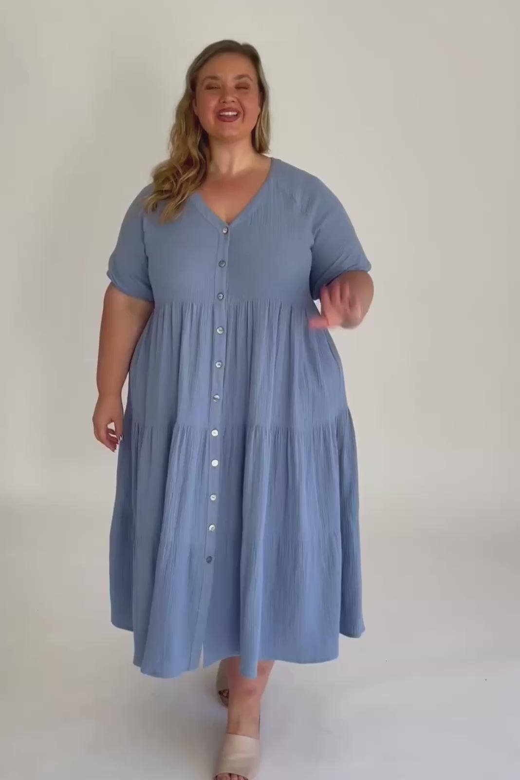 The dress that does it all! Dress it up for your next occasion or wear it casually, we adore how versatile this piece is. So floaty and made from breathable 100% cotton fabric, it feels so light and relaxed to wear. Designed to elongate the body and subtly draw the eye in at the bust and waist. The silhouette is the perfect balance of relaxed and shape showing. Comfort and feminine flare all in one!