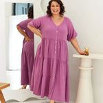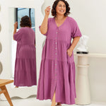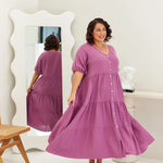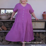 The dress that does it all! Dress it up for your next occasion or wear it casually, we adore how versatile this piece is. So floaty and made from breathable 100% cotton fabric, it feels so light and relaxed to wear. Designed to elongate the body and subtly draw the eye in at the bust and waist. The silhouette is the perfect balance of relaxed and shape showing. Comfort and feminine flare all in one!