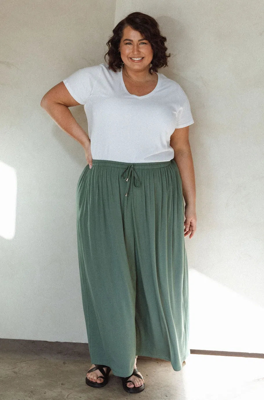These pants come with a warning...they are the comfiest pants you may ever put on your body! You just might never want to wear anything else. The ridiculously soft fabric combines with extra wide legs, and a generous fabric allowance and soft gathering around the tummy, hip and bum area for a gentle drape that doesn't cling. The Darcy Pants give you so much freedom to move and put the CUTE in comfy style. We love that you'll feel just as fab running errands or hanging around home as you will dressing these up and wearing them out to a coffee date. These are just heavenly!