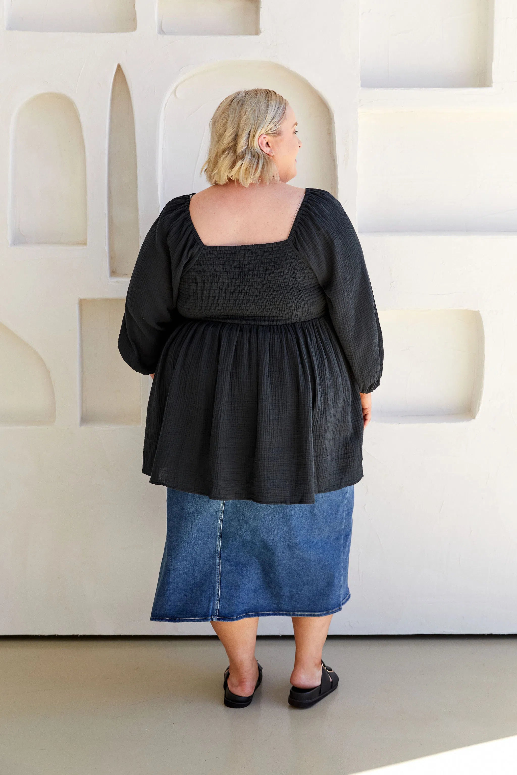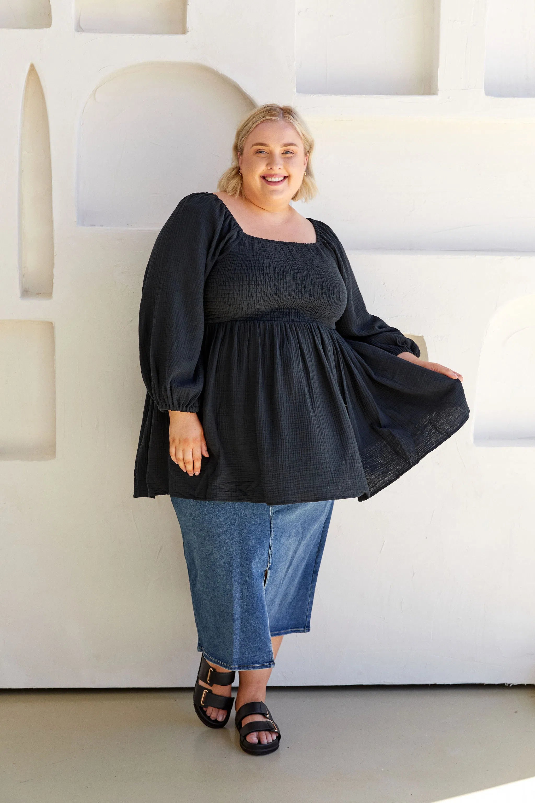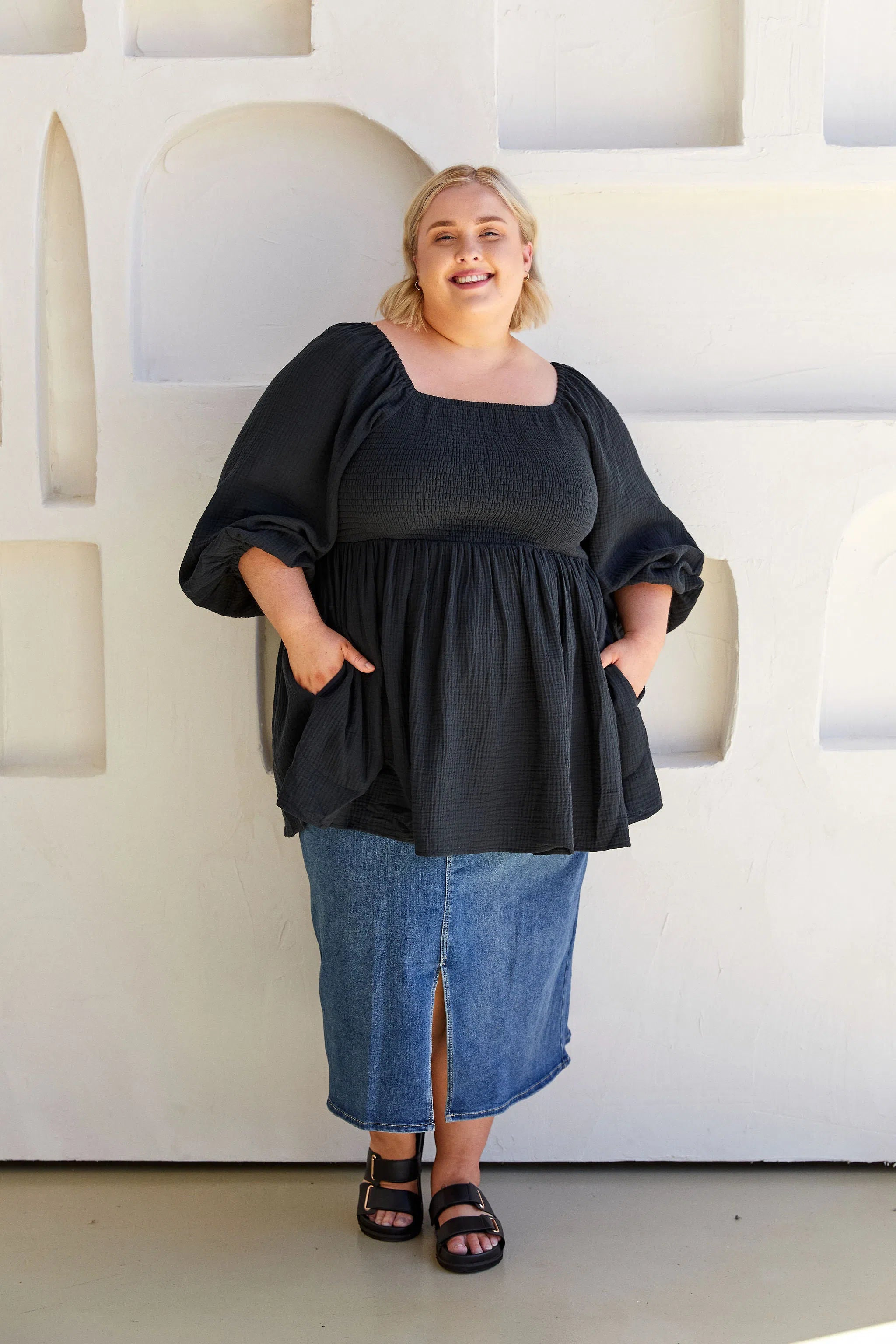 We adore versatile pieces you can wear casually or dress up and the Lexi Top is just that! The dramatic balloon sleeves and babydoll silhouette are bound to make a statement whether you're pairing it with leggings, jeans or a skirt. It's the perfect length for those long in the torso or prefer coverage over the tummy, hip and bum area. We've also double lined the shirred bodice to create a stretchy, yet structured fit that smooths and supports across the bust and upper back. And best of all, it's got hidden pockets cleverly placed in the hem so you won't even notice them.