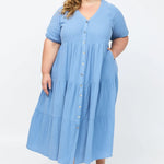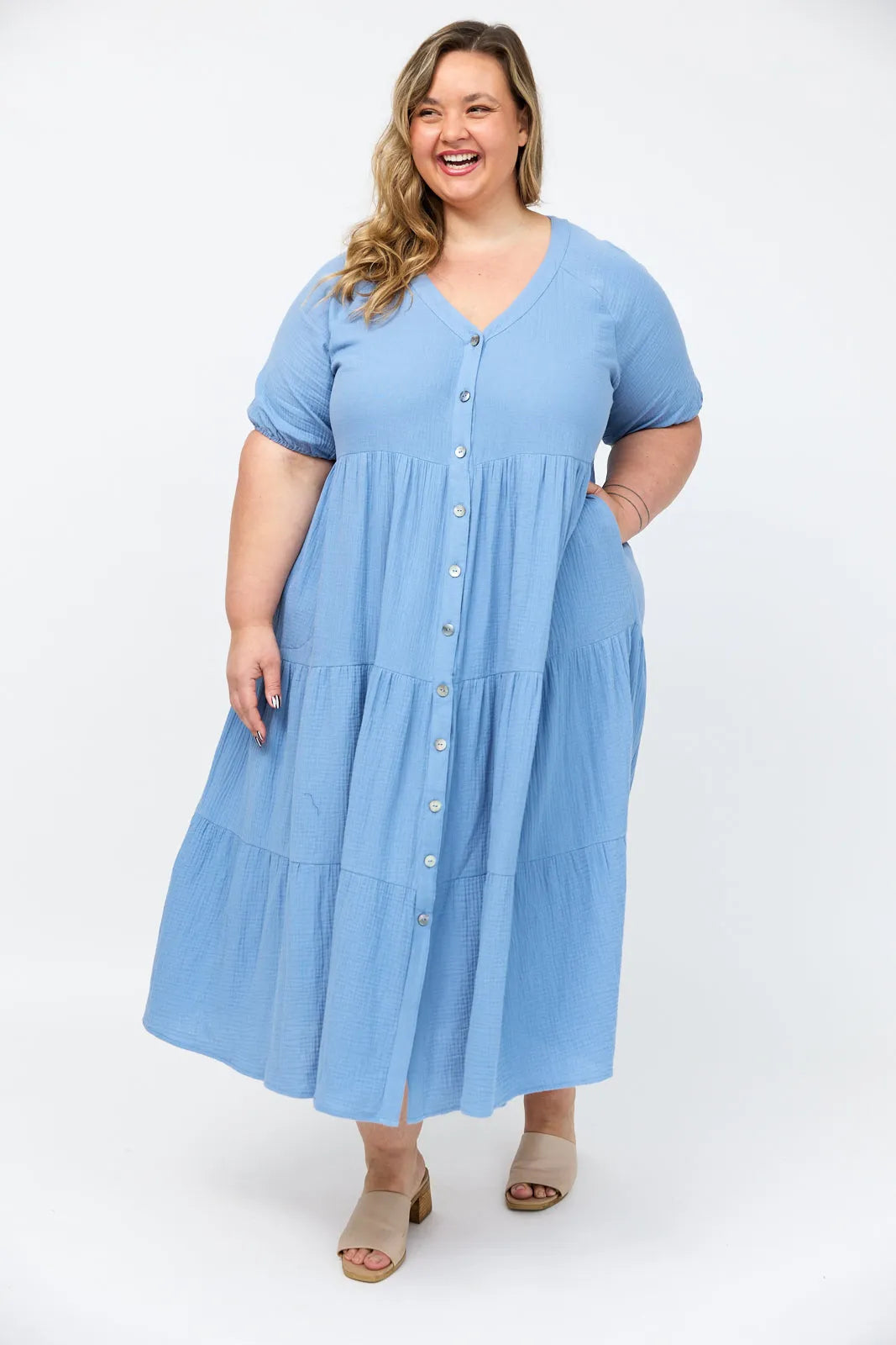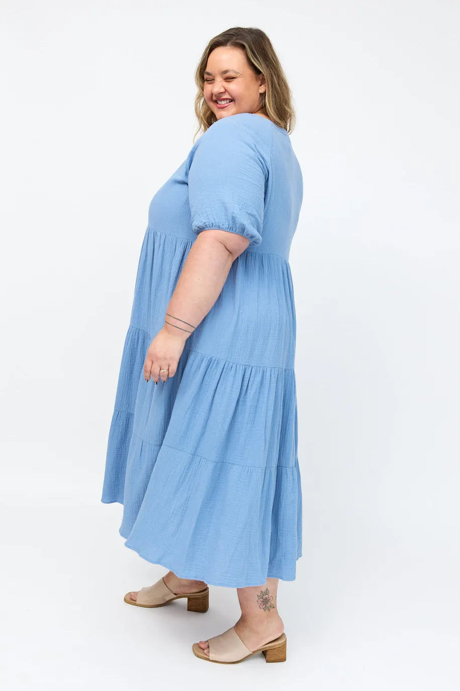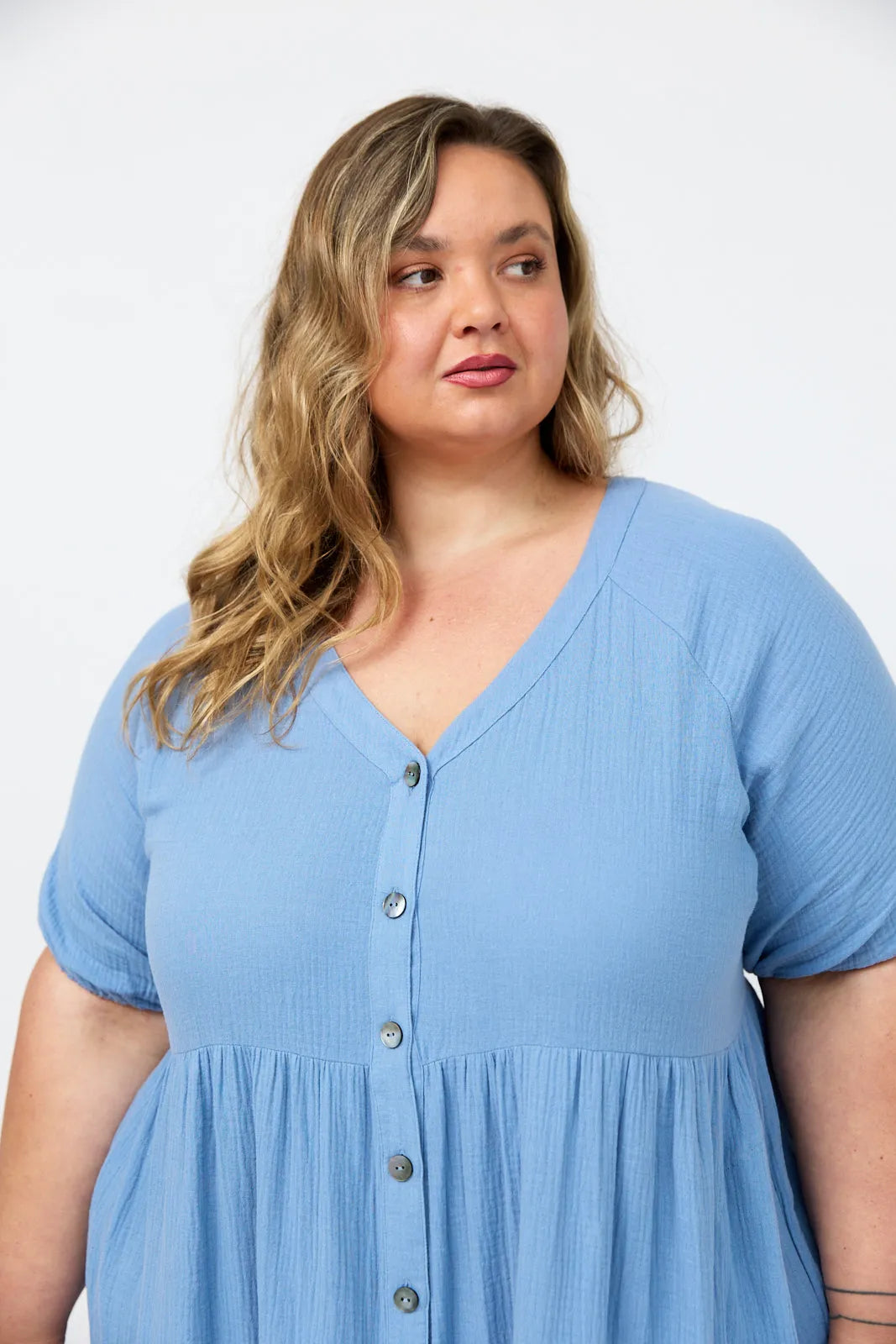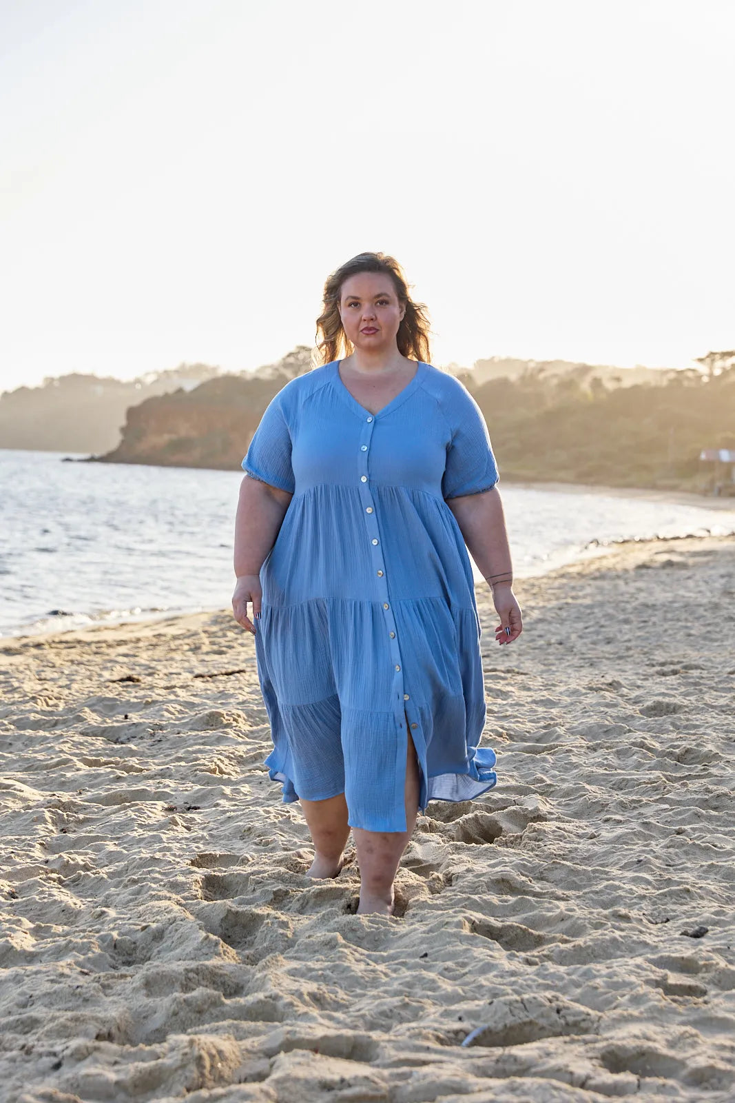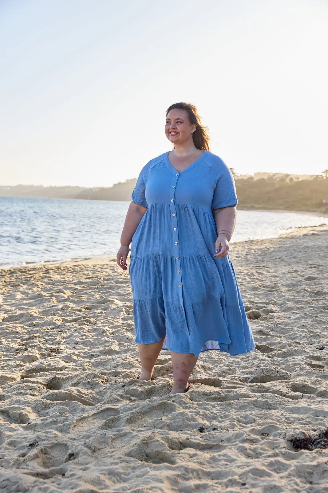 The dress that does it all! Dress it up for your next occasion or wear it casually, we adore how versatile this piece is. So floaty and made from breathable 100% cotton fabric, it feels so light and relaxed to wear. Designed to elongate the body and subtly draw the eye in at the bust and waist. The silhouette is the perfect balance of relaxed and shape showing. Comfort and feminine flare all in one!