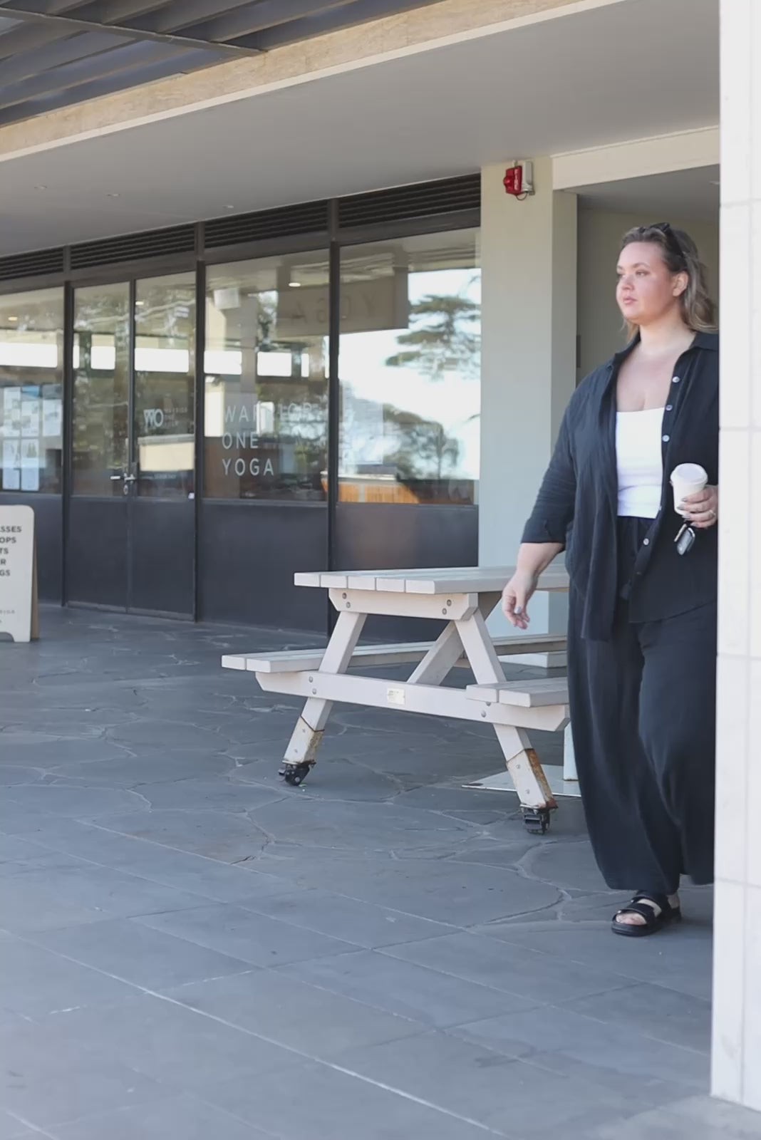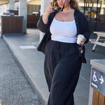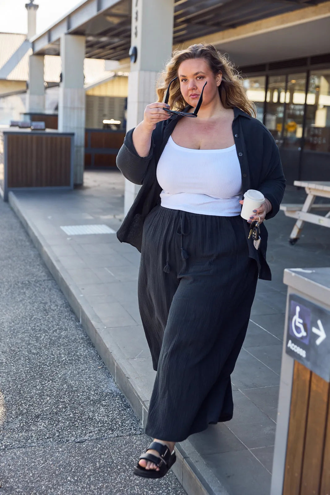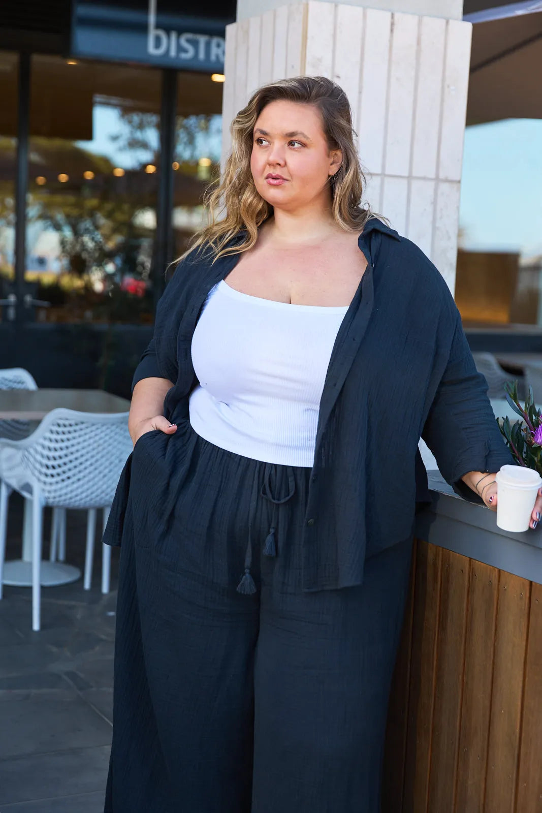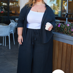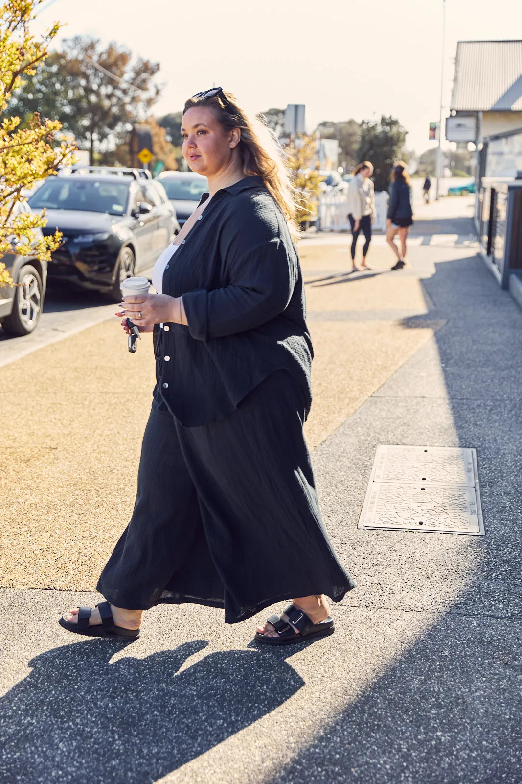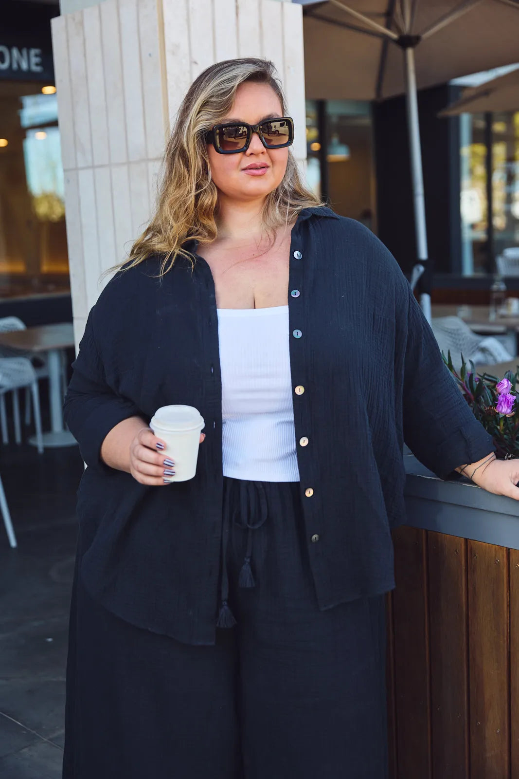 This is the elevated everyday set you’ll reach for on repeat. The Reese Shirt delivers crisp polish with a relaxed, curve-friendly drape that skims over hips and gives freedom through the lower tum. Paired with the Lola Pants in washed black—featuring a high waist, elasticated drawstring and a generous hip + bum room—they strike that rare balance between ease and elegance. Crafted in the same quality textured cotton, this duo feels effortless and intentional: perfect for running errands, meeting friends for brunch, or dressing up after work with minimal fuss. Two versatile staples, endless styling options.